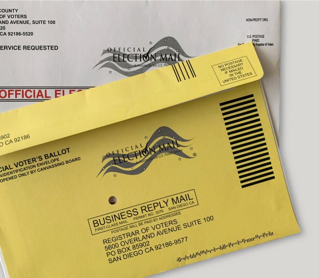 Each ballot packet includes a tamper-proof envelope that must be signed across the seal.